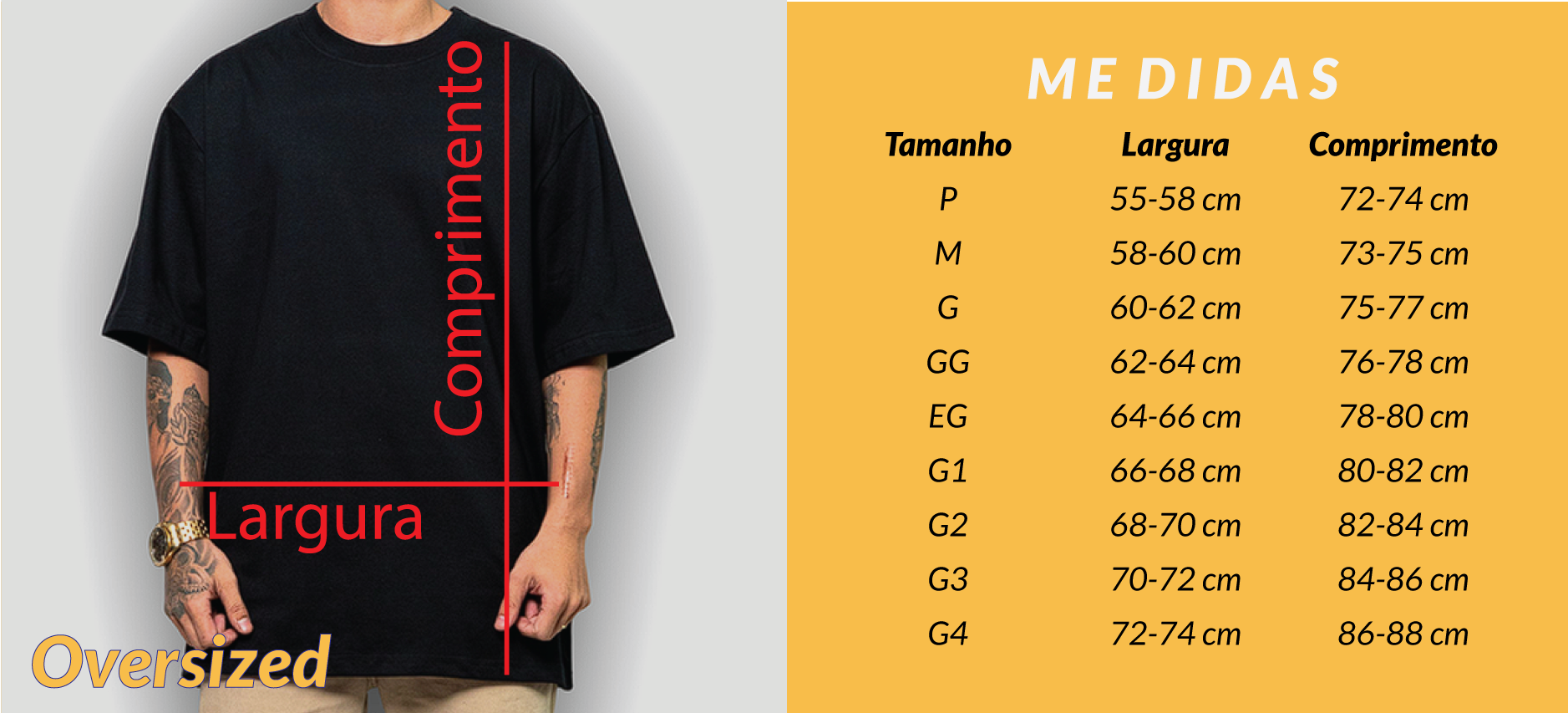 | Tamanho | Largura (cm) | Comprimento (cm) |